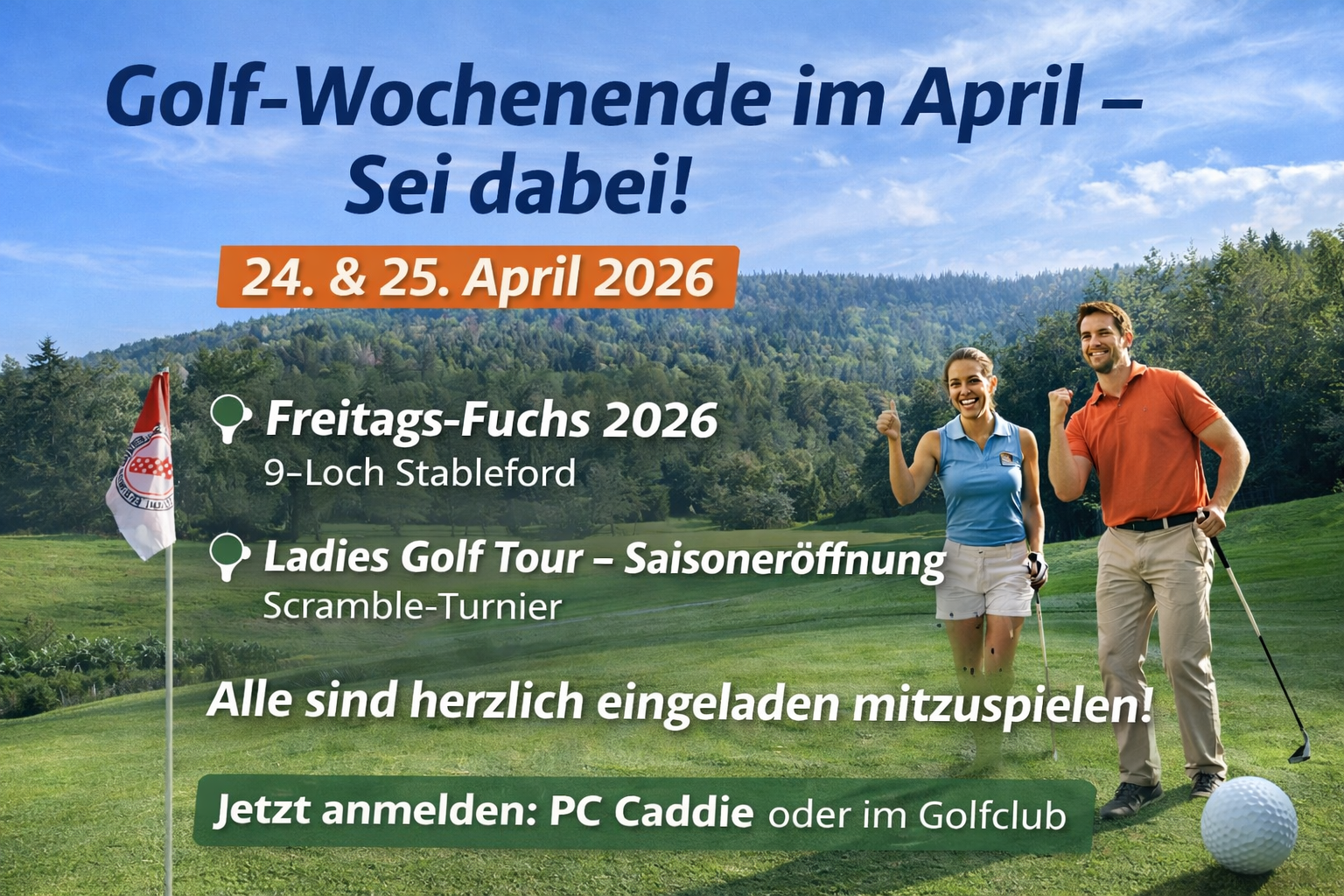Freuen Sie sich auf ein besonderes Golf-Wochenende im April! Am 24. und 25. April 2026 starten wir gemeinsam in die neue Saison – mit zwei abwechslungsreichen Turnieren für unterschiedliche Zielgruppen und jede Menge Spielfreude.